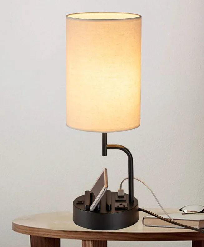This cool table lamp helps you charge your phone and tablet overnight. With two phone stands, it gives you a hands-free way to watch shows, chat with friends, and more. It also has three charging ports (two USB-A and two USB-C), as well as an AC outlet. Its linen shade is minimalist but still stylish.