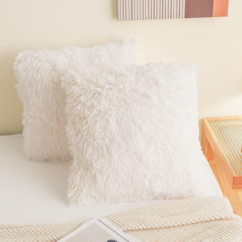 HAIHUA Faux Fur Throw Pillow Covers, Fluffy Soft Fuzzy Decorative Pillow Cases Cute Pillowcases for Home Bedroom Living Room, Zipper Closure, Set of 2 (Beige, 18"x 18")