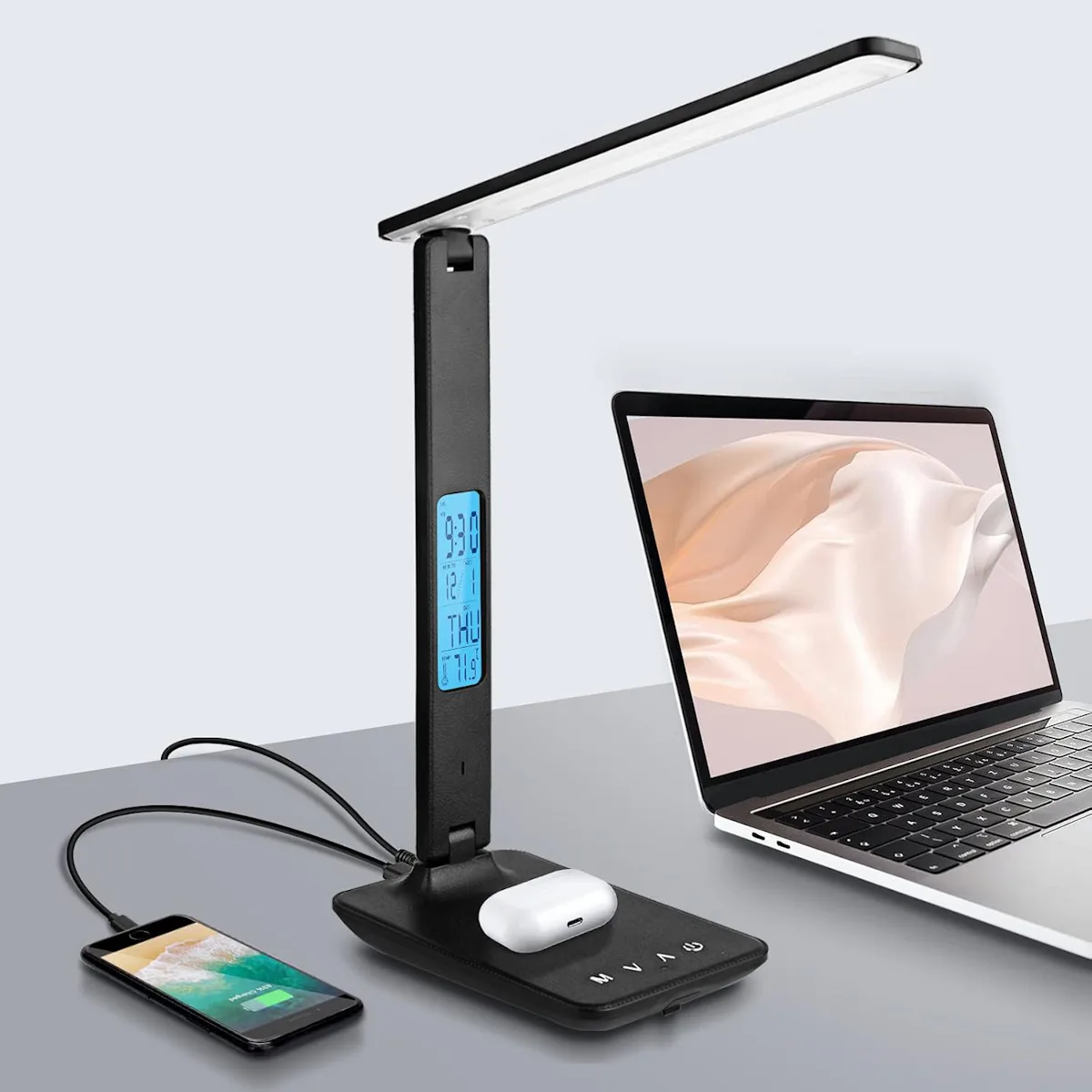 Amazon -This clip-on desk lamp is perfect for smaller spaces where you need extra surface area. It has three color modes and 10 brightness levels for a custom glow. Its USB cord plugs into laptops and power banks just as easily as wall outlets. A flexible neck shines at any angle, whether you're studying, crafting, or watching TV.