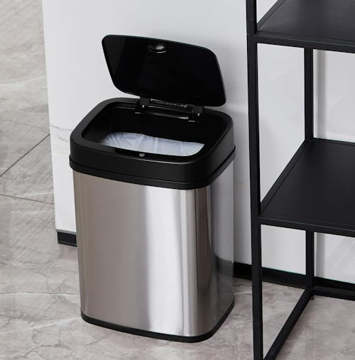 Wave your hand and this sleek motion-sensor trash can will pop open instantly without you having to touch a thing. Available in seven finishes, the 3-gallon bin is made with fingerprint-resistant stainless steel and a water-resistant sensor that’s designed to withstand bathroom moisture. On top of that, it has a removable ring liner to keep bags neatly in place and delay-sensing technology to help preserve the battery life.