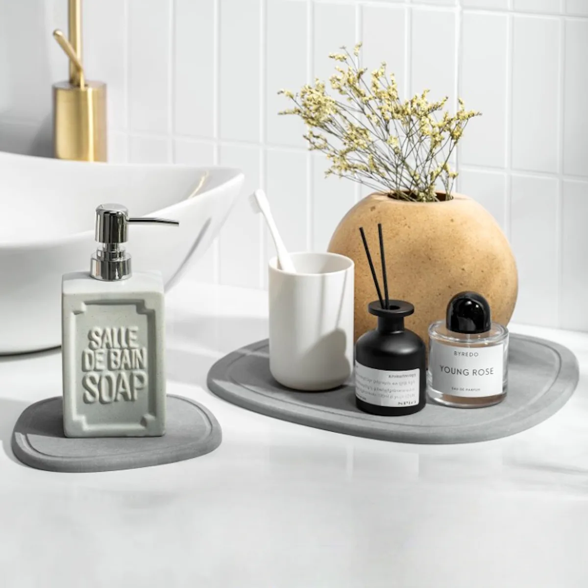 This two-tier bathroom counter organizer makes the most of your vertical space. It also includes a hair tool holder that's great for blow-dryers, diffusers, and more. Raised edges keep your bottles and jars from sliding off, while its minimalist design and easy assembly process make it user-friendly. Each tier measures 12.5 by 8.5 inches.