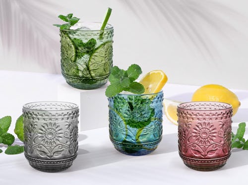 These drinking glasses will add a sophisticated touch to your next gathering. Guests will be shocked by the affordable price tag because their vintage-inspired style makes them look like a family heirloom. They feature an embossed floral design and a thickened bottom for stability. Plus, they’re available in over a dozen different sizes and colors.