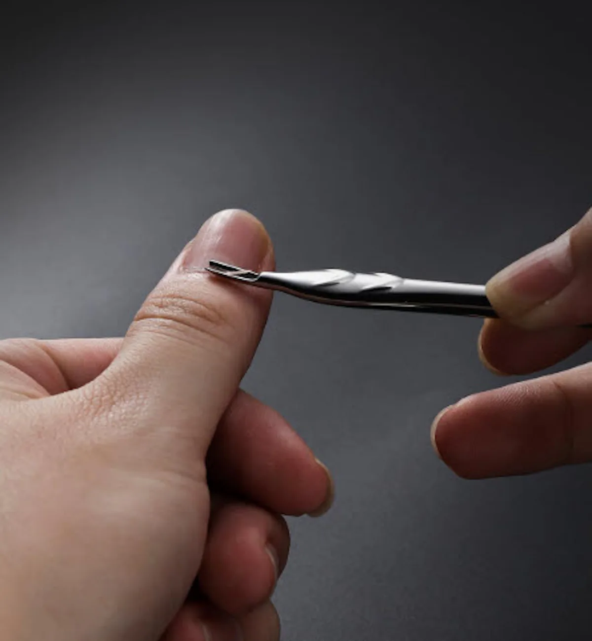 A lightweight stainless steel cuticle pusher & trimmer