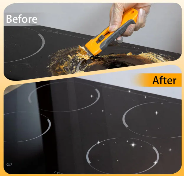 This scraping tool removes residue without damaging your nails. Its safety lock protects fingers and hands from its blade when it's not in use. Though it's tough on stickers, burnt food, and other gunk, it won't scratch your surfaces. It comes with fifteen replacement blades, and its compact size is perfect for hard-to-reach areas.