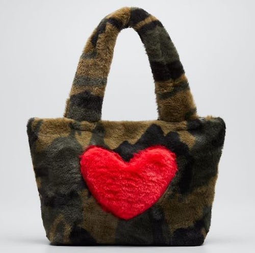 Streetwear lovers need love too, and there’s no better way to show it than with this faux fur tote. Not overly thematic, the design balances out its red heart graphic with a camo print that can easily be dressed up or down. Try styling the furry bag with a matching Valentine’s Day sneaker to complete the look.