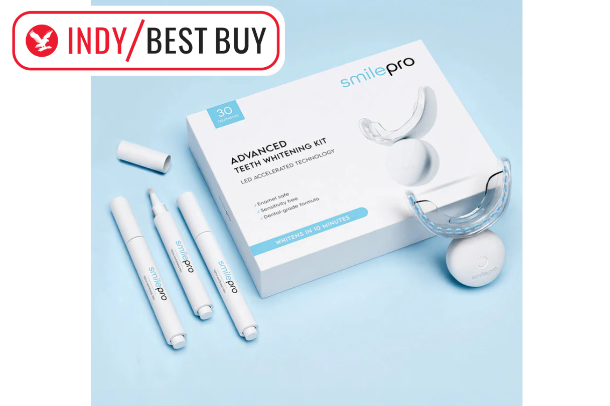 - Best overall – Smilepro advanced teeth whitening kit: £49, Smileproworldwide.com