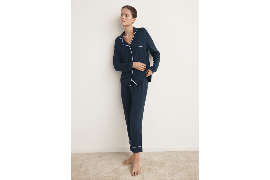High street favourite Mango has infused its fashion ethos into its pyjama offering with luxe-looking designs at purse-friendly prices aplenty. Available as separates and as sets, shop everything from pyjama jackets and knitted co-ords to contrast piping shirts and matching trousers.