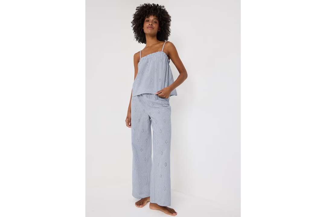 If you’re treating yourself, The White Company’s pyjama offering oozes luxury – think waffle sets, brushed cotton and silk pieces. Priced between £30 for a separate and £198 for a silk, piped set, there’s sleepwear for both ends of the budget.