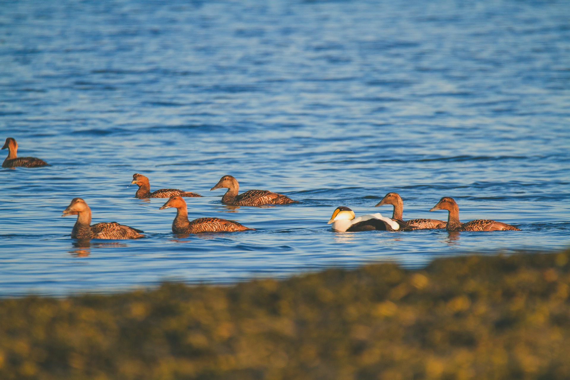 Each colony has from a few dozen to a few thousand nests. Eiders share their nesting islands with herring gulls and sea gulls, which are predators of eider eggs and ducklings.