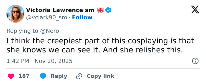 “Why does Megs keep doing this? It’s really weird. Obssesive. And … creepy since the person she is trying to imitate is her husband’s highly well-known deceased mother,” one commented online.