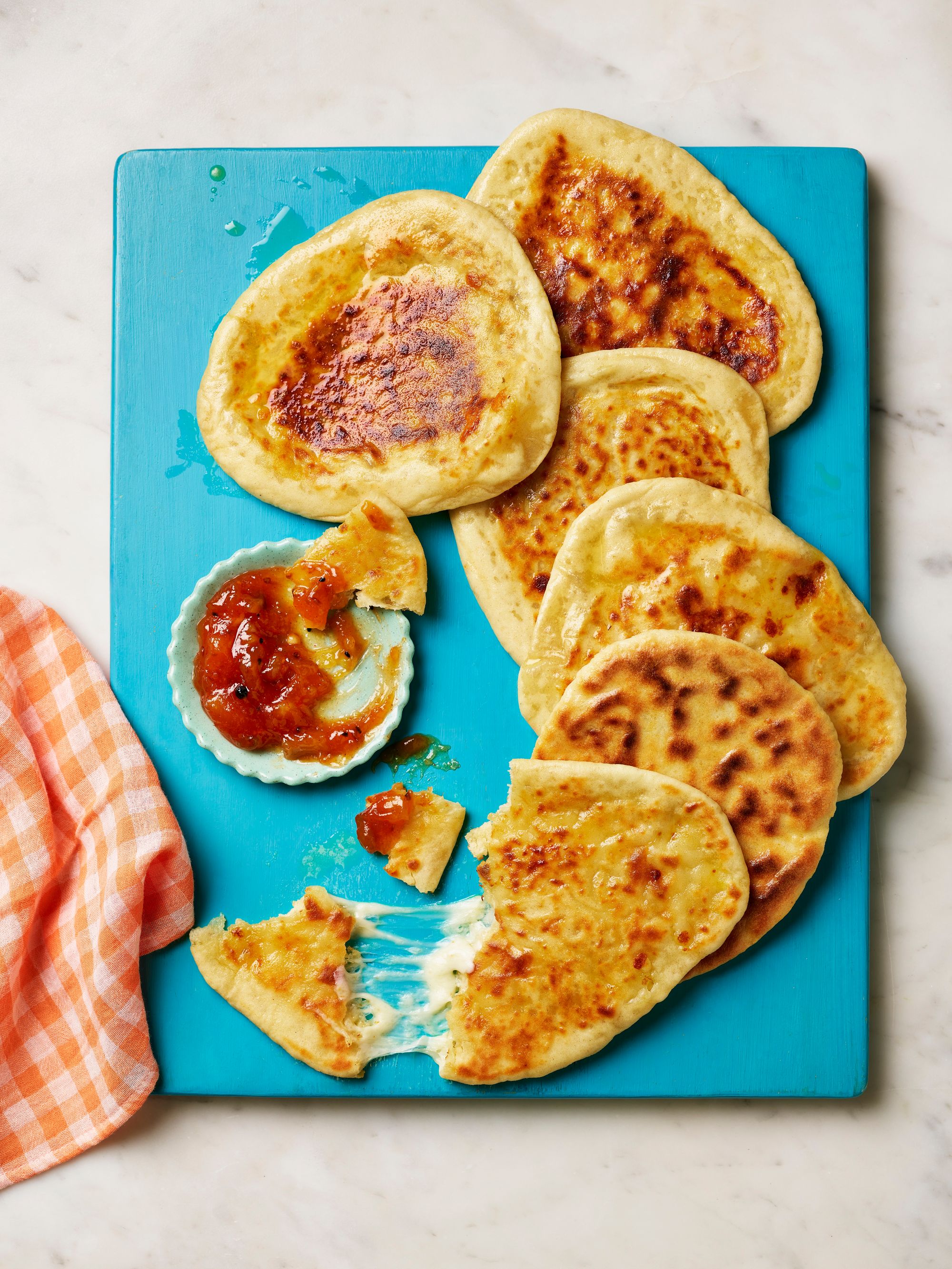 “With no kneading and no resting, the trick to this is using a combination of self-raising flour and yoghurt, to create tender, soft naans.”