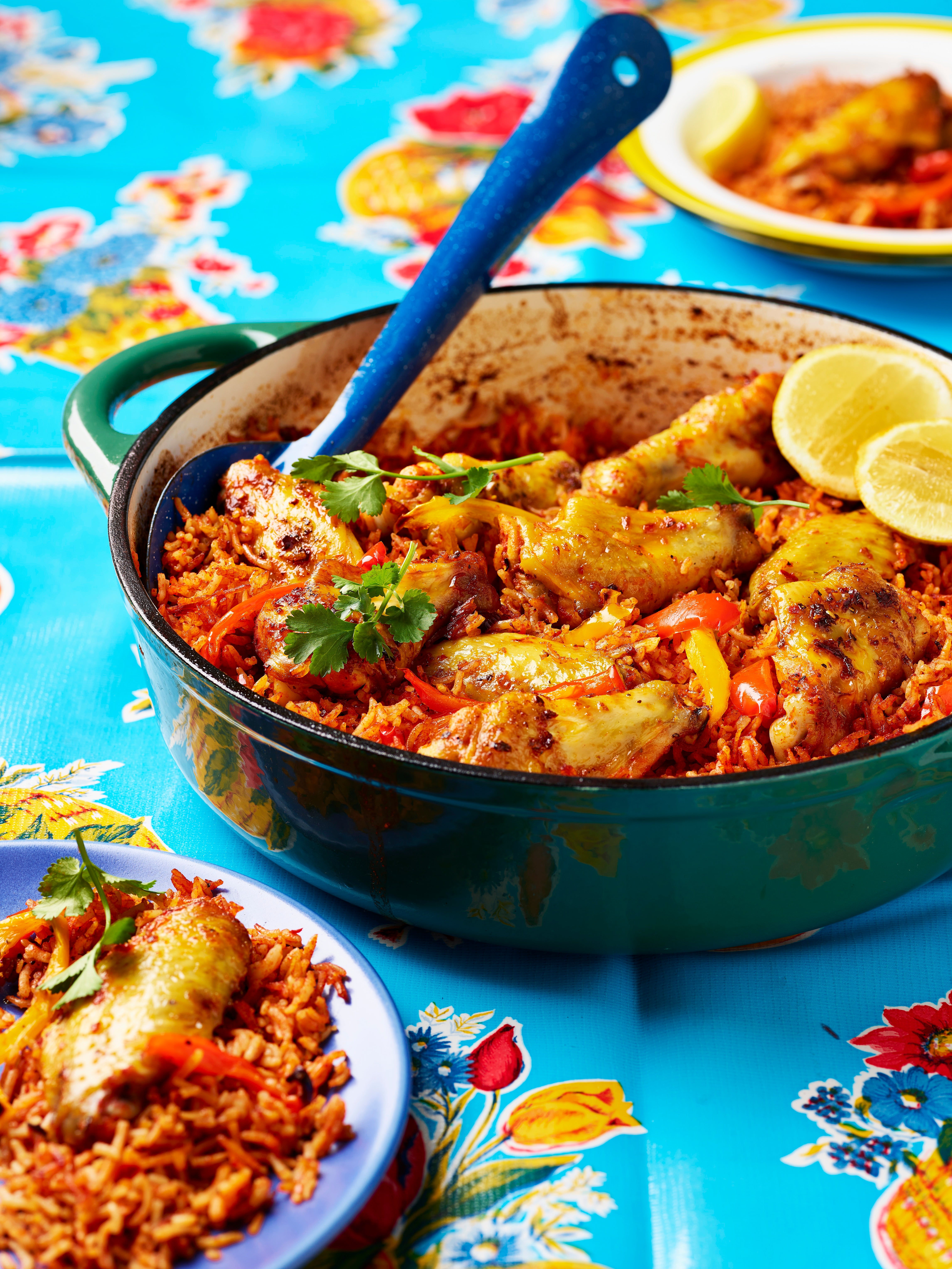 “Spicy red rice topped with flavour-packed wings, baked until perfect in the oven: it’s a fuss-free dish with very little washing-up, as we love to dig straight in from the same dish, with everyone choosing their own section to eat from!