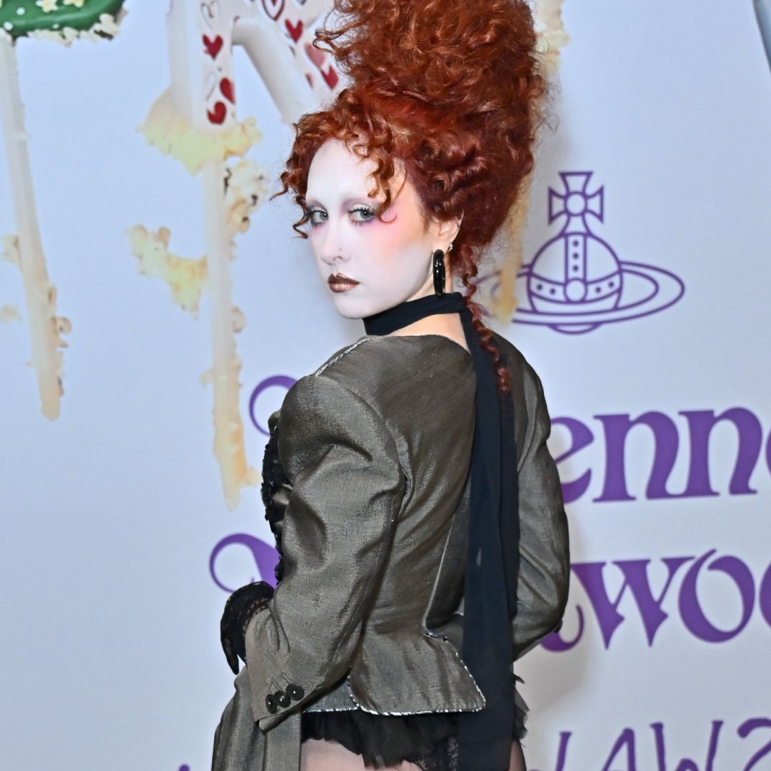 After wearing a very naked Mugler dress to attend the 2026 Grammys, Chappell Roan headed to Paris Fashion Week where her style choices continue to surprise and delight. Roan—who works with stylist Genesis Webb—swapped her naked Grammys look for a completely opaque Mugler turtleneck corset and matching fit-and-flare skirt earlier this week. And on Saturday, March 7, the "Casual" singer arrived at Andreas Kronthaler for Vivienne Westwood's Fall 2026 Ready-to-Wear runway show in an extremely eye-catching gown.From the front, Roan's gown features a dramatic silhouette, including long sleeves, shoulder pads, and a plunging V-neck, with the dress narrowing at the waist before cascading into a gathered skirt. But from the back, the Vivienne Westwood gown takes on an entirely different identity.