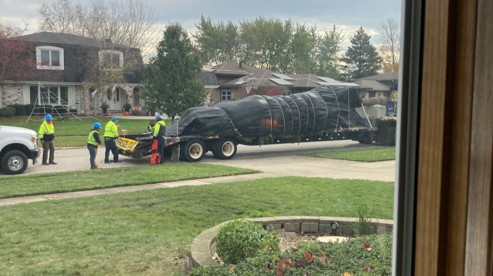On Friday, the conical spruce was cut down, placed on a flatbed truck and hauled to Millennium Park next to the ice rink, where it will rise once again — if only for a short time — to be smothered in lights and admired by thousands. Mayor Brandon Johnson is expected to flip the switch Nov. 17.