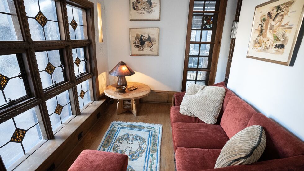 The condominium where it is housed consists of three adjacent buildings that share a courtyard, but the gem is Unit 8, a four-story, 3,000-square-foot space adorned with artwork — on its walls and in the construction of the unit itself. Known today as The Glasner Studio, it has hand-wrought woodwork, bas-relief friezes, painted frescoes, tile mosaics and art glass windows all created by Miller, many of which are recognized as important artworks in their own right.