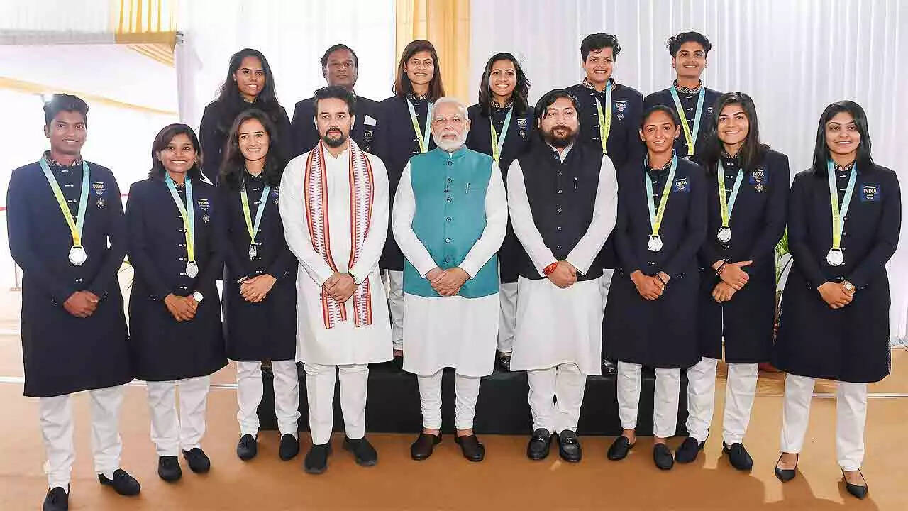 NEW DELHI: Prime Minister Narendra Modi on Saturday felicitated the Indian contingent on its return from the Commonwealth Games, saying the 'Golden Era' of Indian sports is about to dawn. He lauded the athletes for the record haul of medals at Birmingham. The PM hailed the revival of the country's rich legacy of hockey and also the stupendous performance of women athletes besides the debutants.