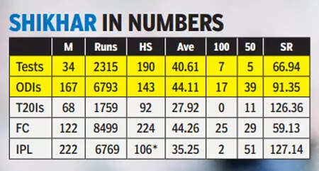 Shikhar’s Dhawan was one of the best white-ball openers of the 2010s. The Delhi cricketer played some memorable red-ball innings as well, his debut Test ton against Australia in Mohali being a case in point. TOI takes a look at Dhawan’s top-five innings across formats in international cricket.