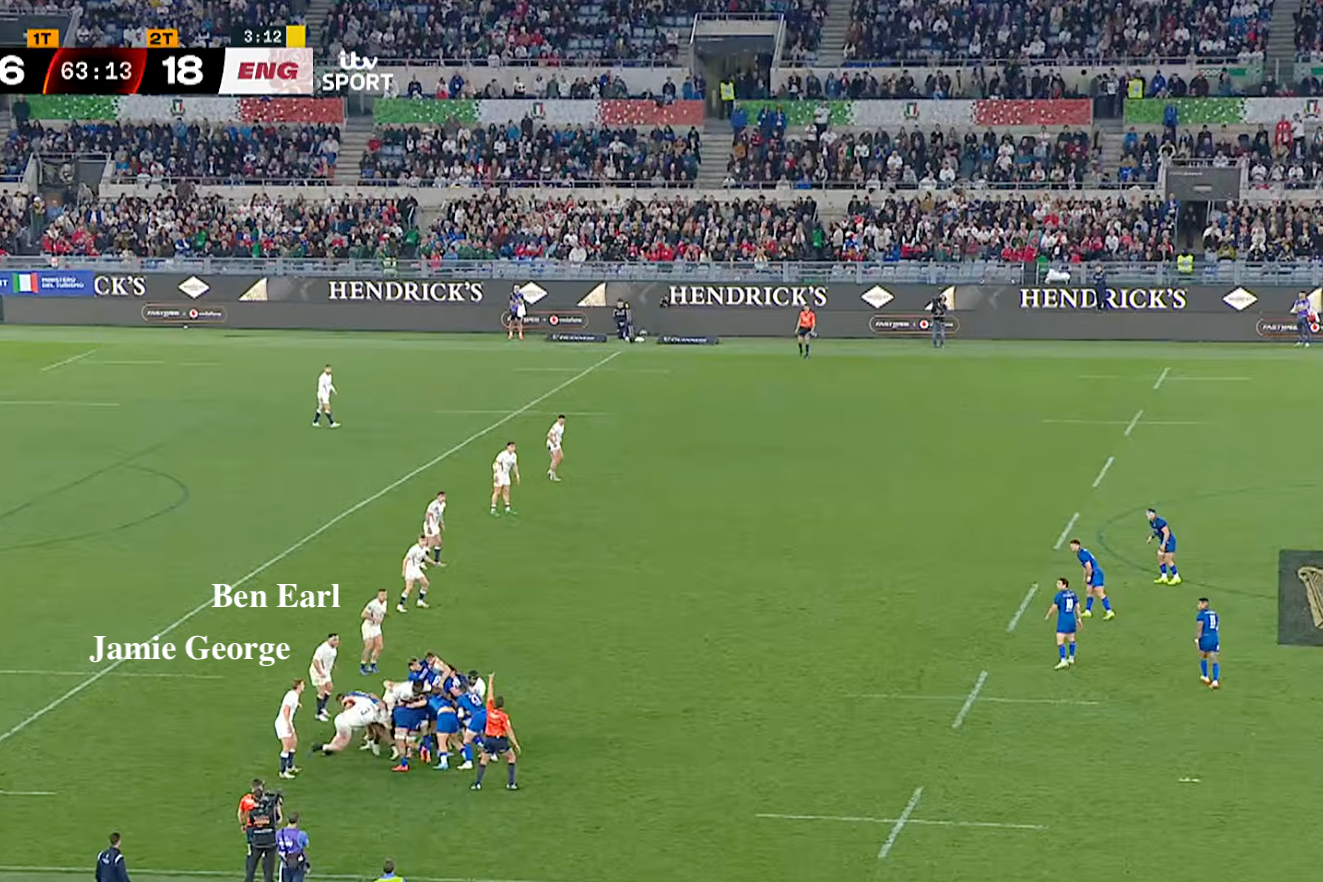 However as Alessandro Fusco attempts to play away, Itoje cannot resist a slap at the ball. The lock had been back to his spoiling best in Rome but this was an uncharacteristically bad decision, particularly given the scenario in which it came.