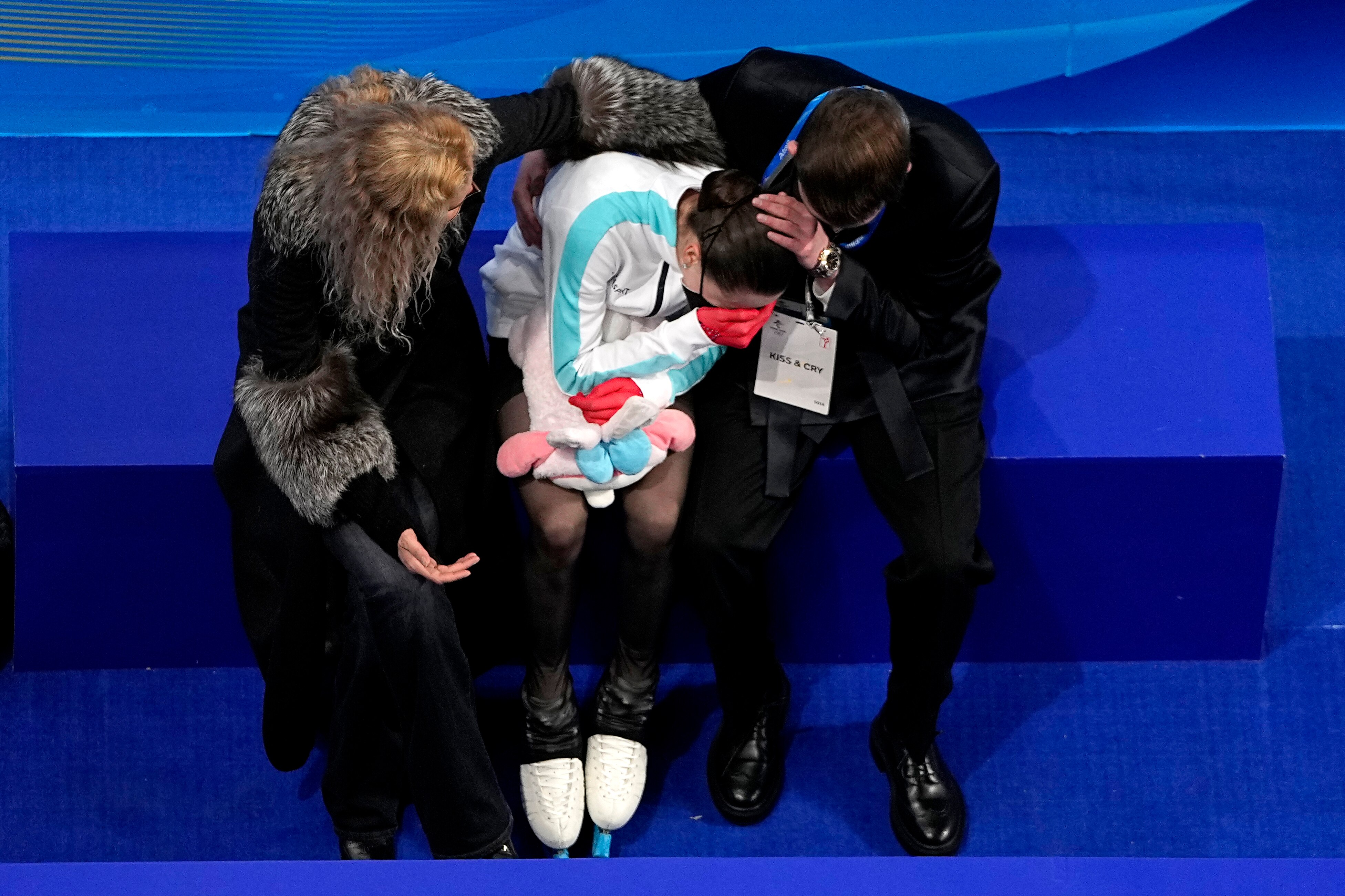 Tutberidze only put her arm across Valieva's shoulder as she sat sobbing in the so-called kiss and cry area while waiting for her results.