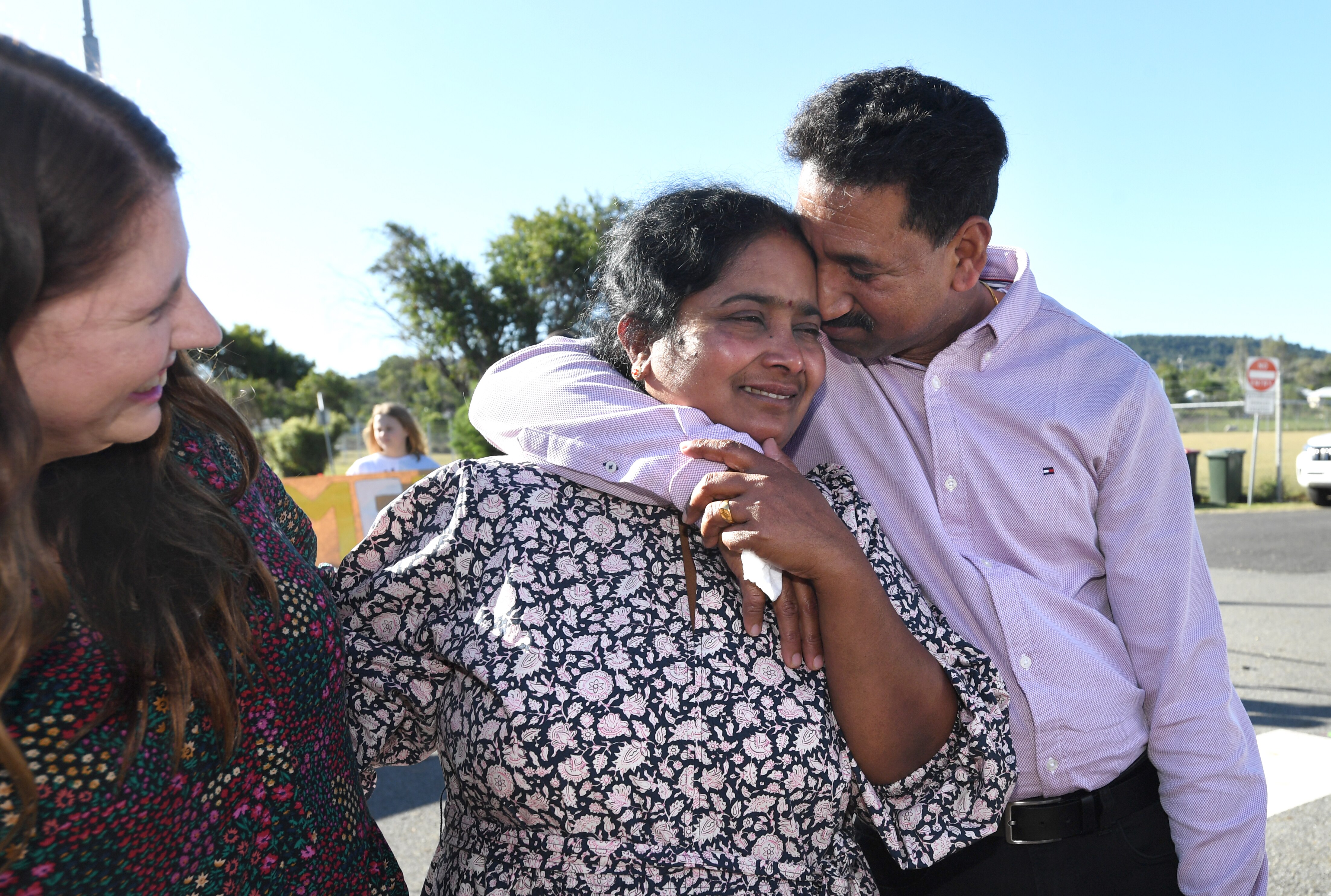 The Nadesalingams were greeted with loud cheers from a crowd of emotional supporters as they disembarked the plane.