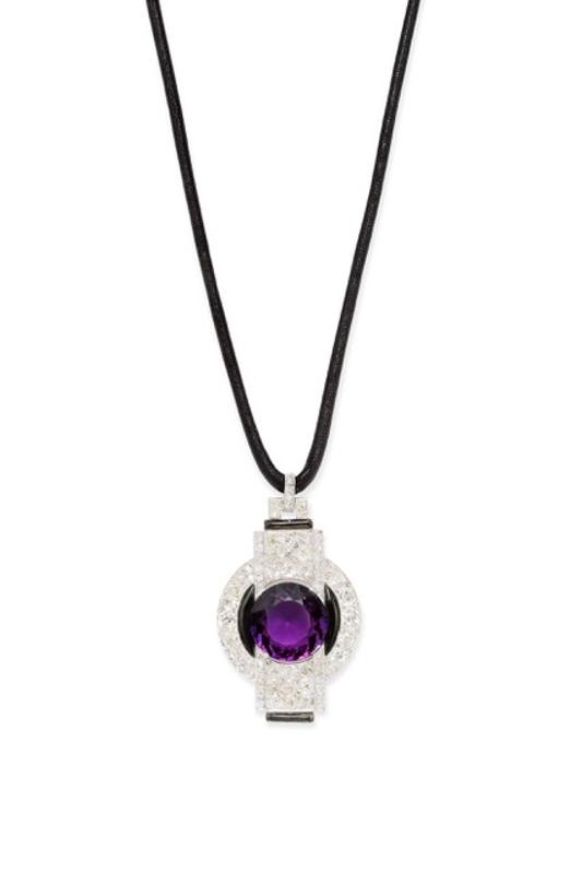 Veronique Bamps’ pendant in platinum set with diamonds and amethyst by Georges Fouquet, circa 1920.