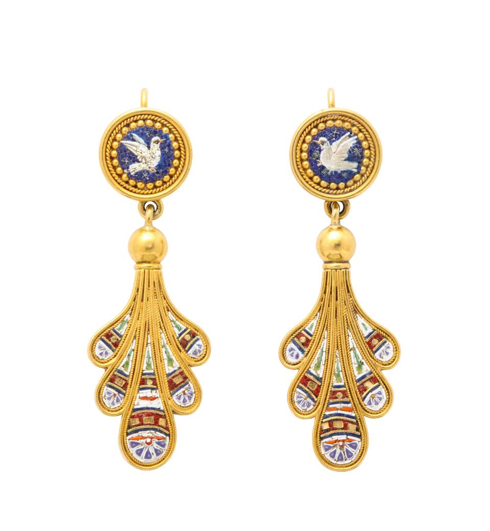 James Robinson’s Italian 18K Gold and Micro Mosaic Pair of Earrings by Antonio Carli, circa 1875.