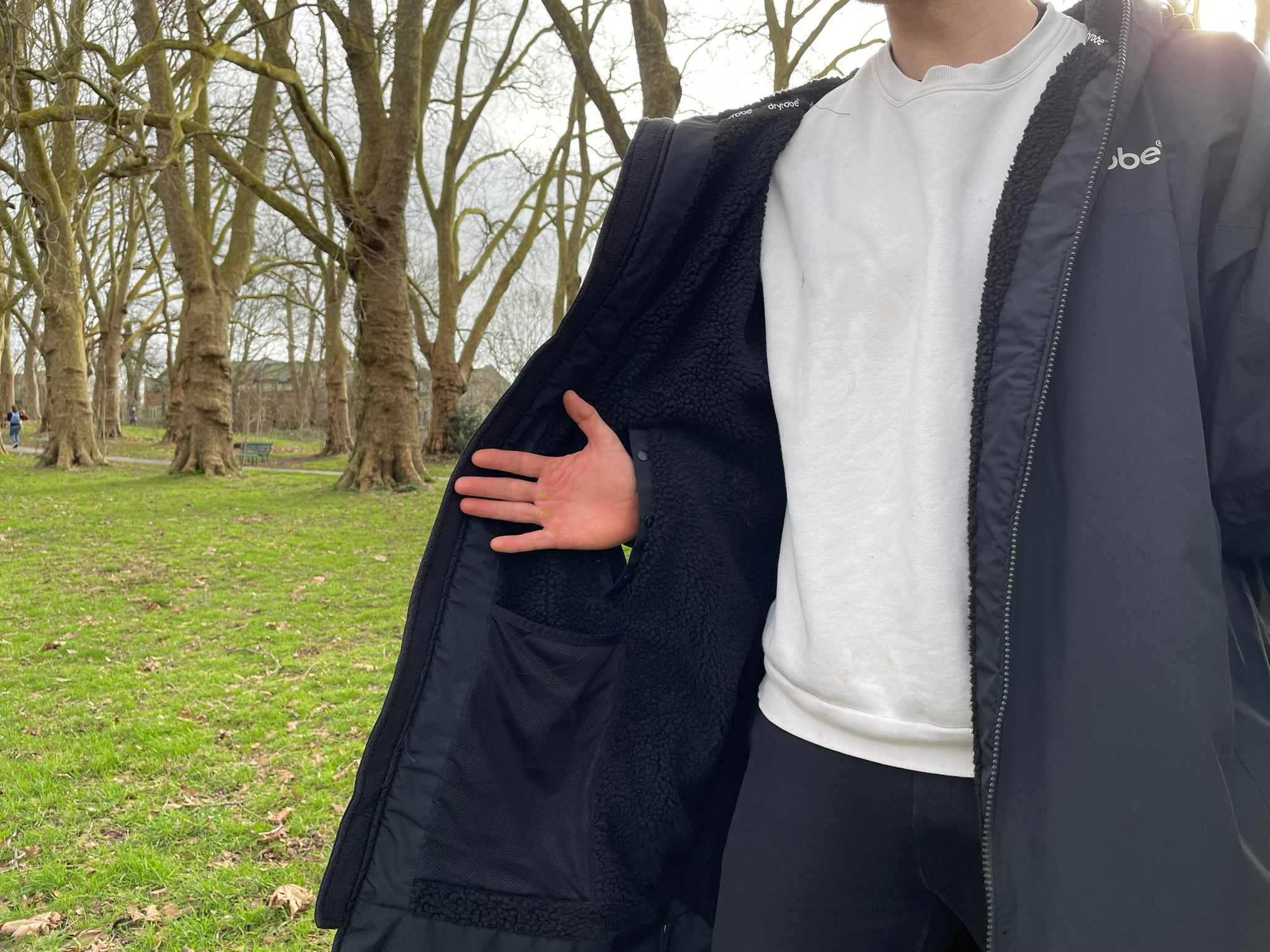One major bonus I found it had over other changing robes was its breathability. New “fast-drying back2skin” technology wicked water away from my body, which I was thankful for after a particularly chilly February cold plunge, finding myself dry within seconds. The robe quickly took me (a perennially cold person) to a comfortable temperature without being stifling.