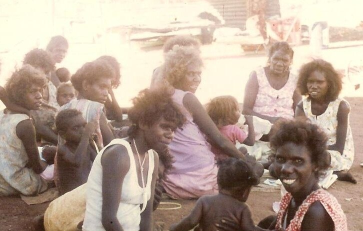 Nellie Camfoo (centre) photographed with her sisters and family in Bulman. (Supplied: Gillian Cowlishaw )