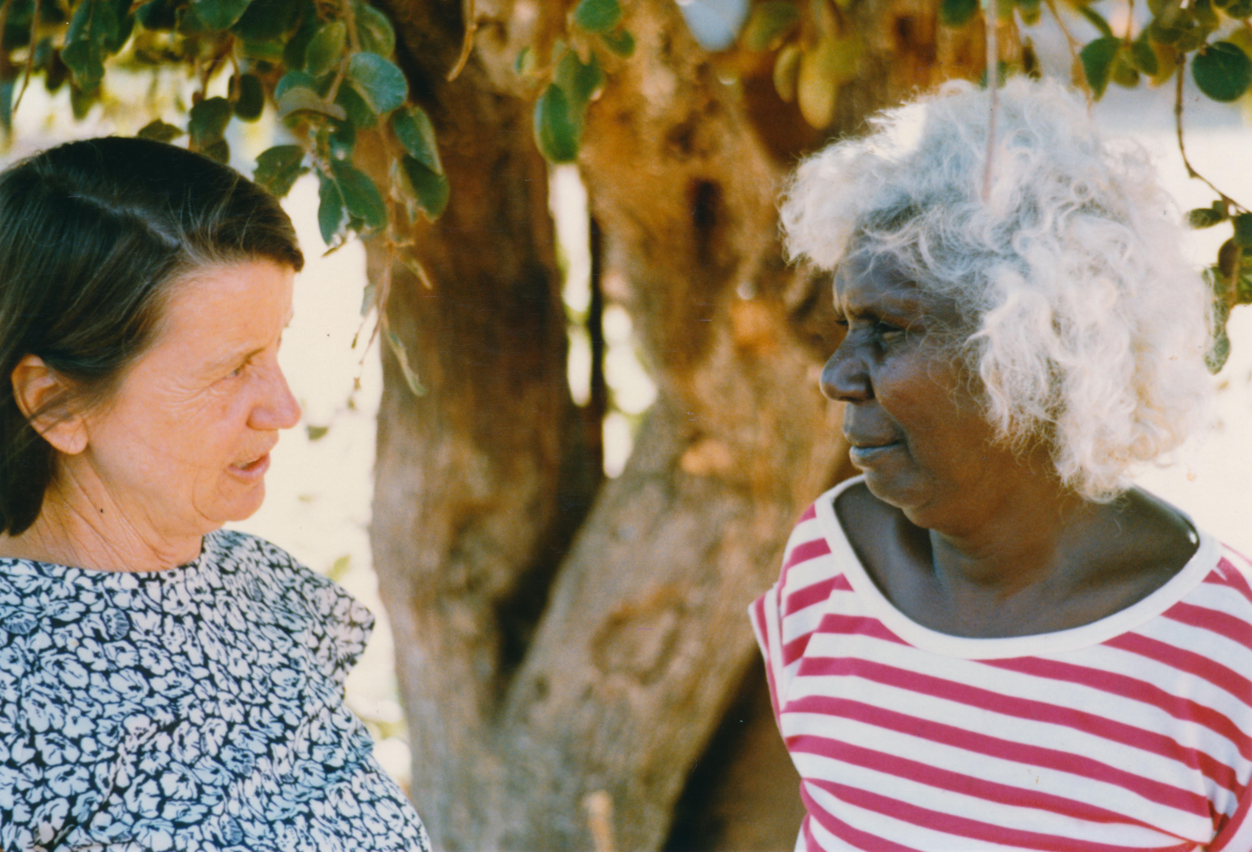 Nellie Camfoo photographed with Australian anthropologist Gillian Cowlishaw (left) in Beswick. (Supplied: Gillian Cowlishaw)