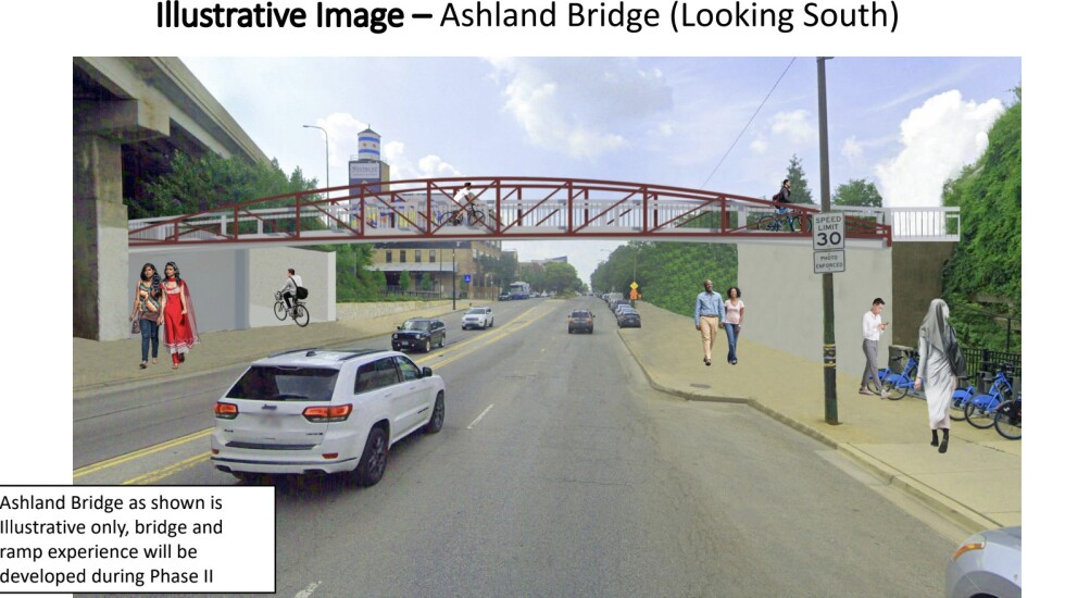 “Ashland is a barrier for biking and walking. The highway is a barrier, and the railroad is a barrier,” Helphand said. “To figure out how to get beyond those things so that folks don’t have to zigzag through difficult crossings, it opens up the Bloomingdale Trail to more usage, more connections between neighborhoods, more biking and walking in general.”