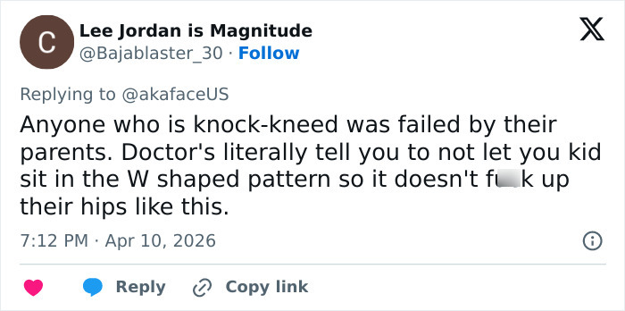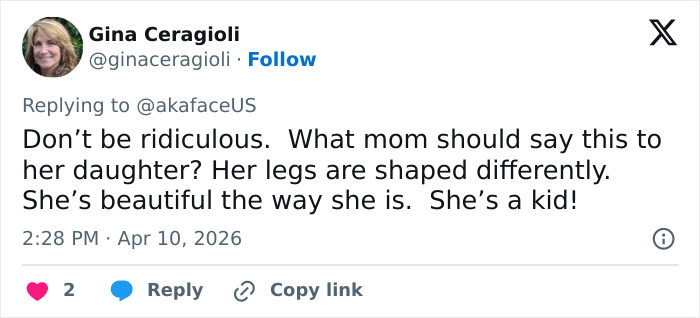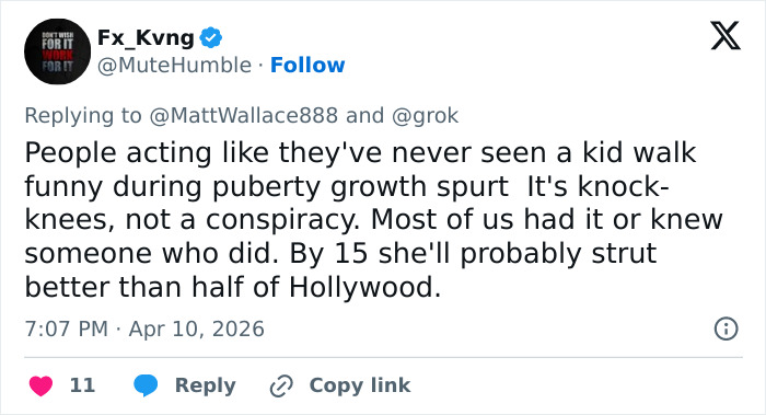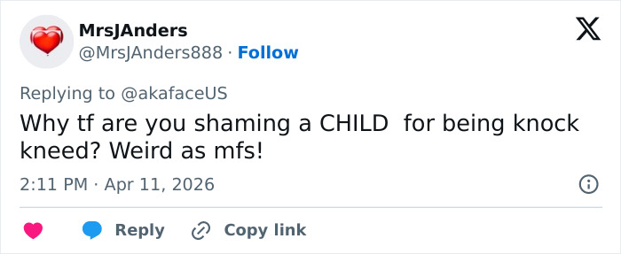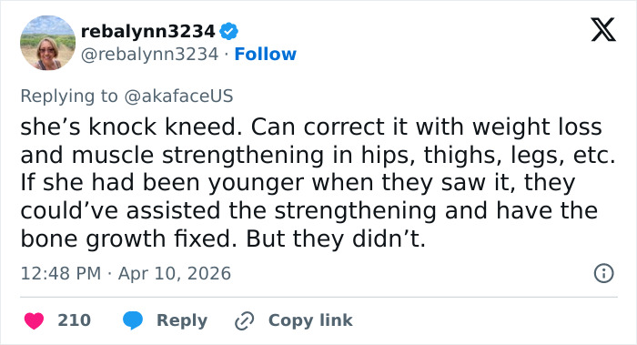 “She is a knocked kneed flat footed child. Leave her alone. Damn,” one person wrote, referencing a normal part of development where knees touch but ankles stay apart.