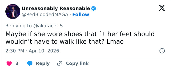 Others focused on her appearance. “Poor posture. Big shoes. A lot of things,” one user commented.