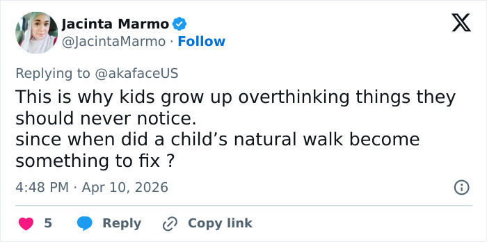 Some also pointed out practical reasons behind the way she was walking. “Look at the shoes she is wearing. They are untied and way too big. You would have to alter your stride to walk in them,” one user said, while another wrote, “She’s still a lil kid bro, I think it’s normal for now.”