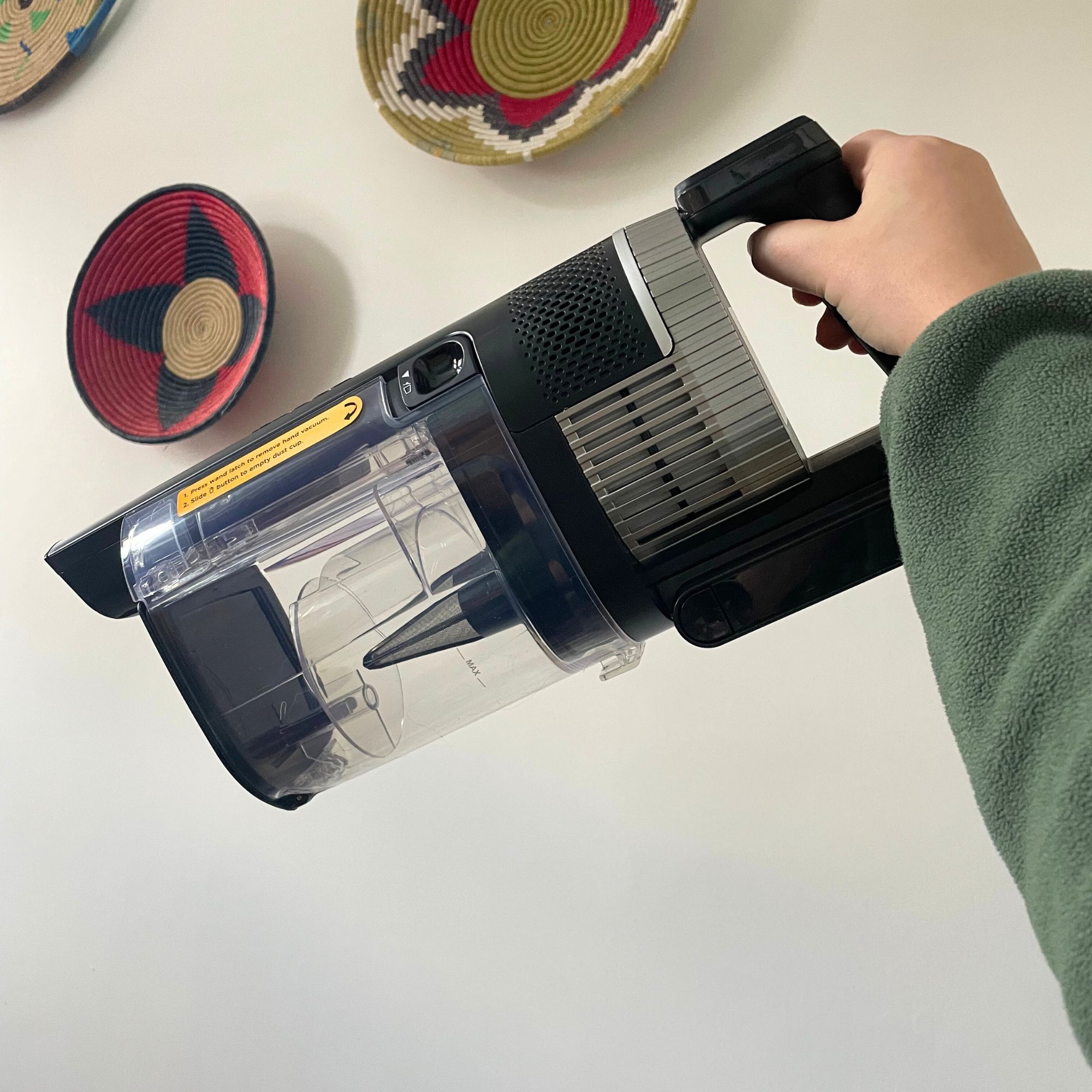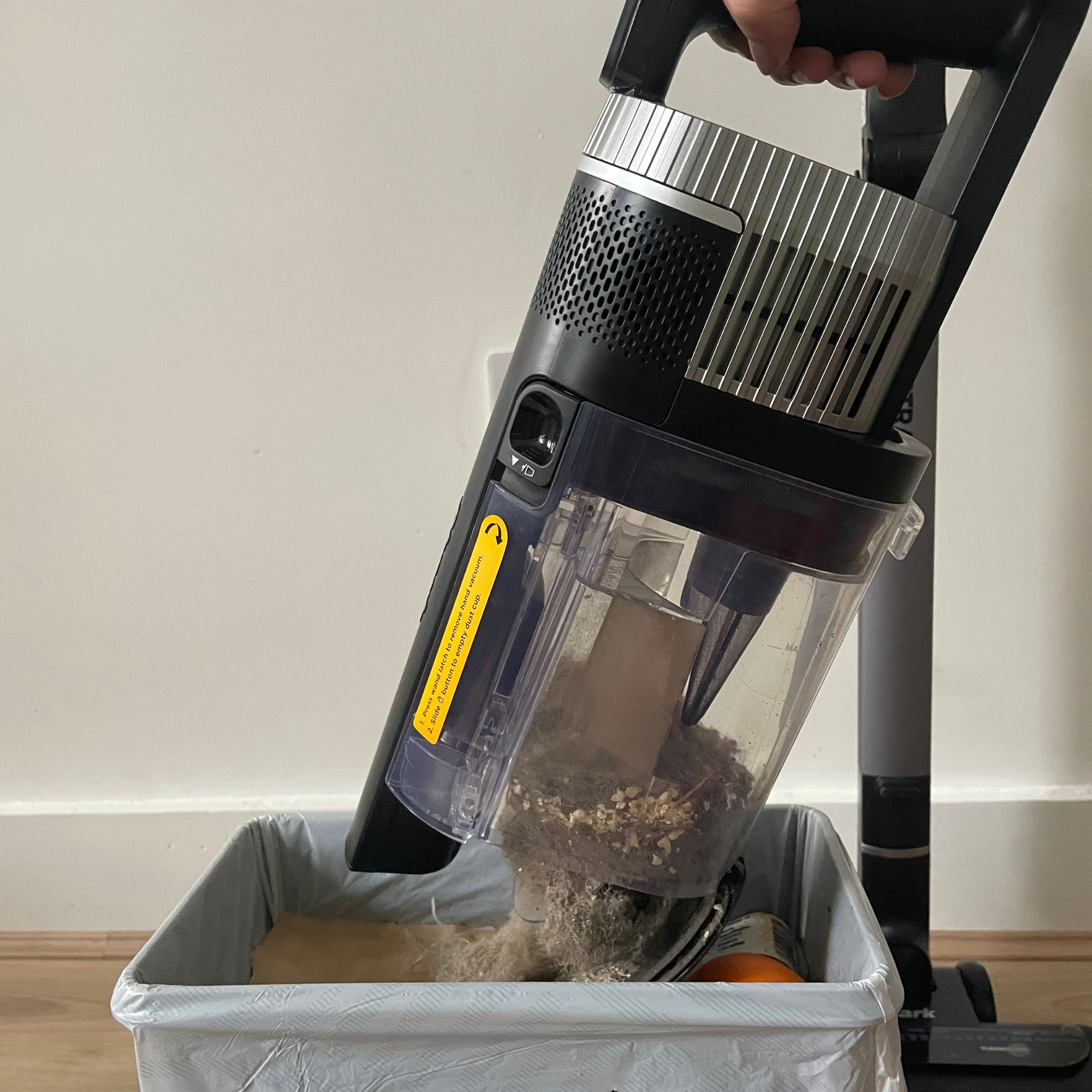 The Shark Stratos also uses a point-and-shoot mechanism, which means the canister collapses out into your main rubbish bin when you empty it. Unlike some vacs I've tested, the mechanism here is seriously powerful, and I've not yet had to fish any hair or dust out from the bin manually.