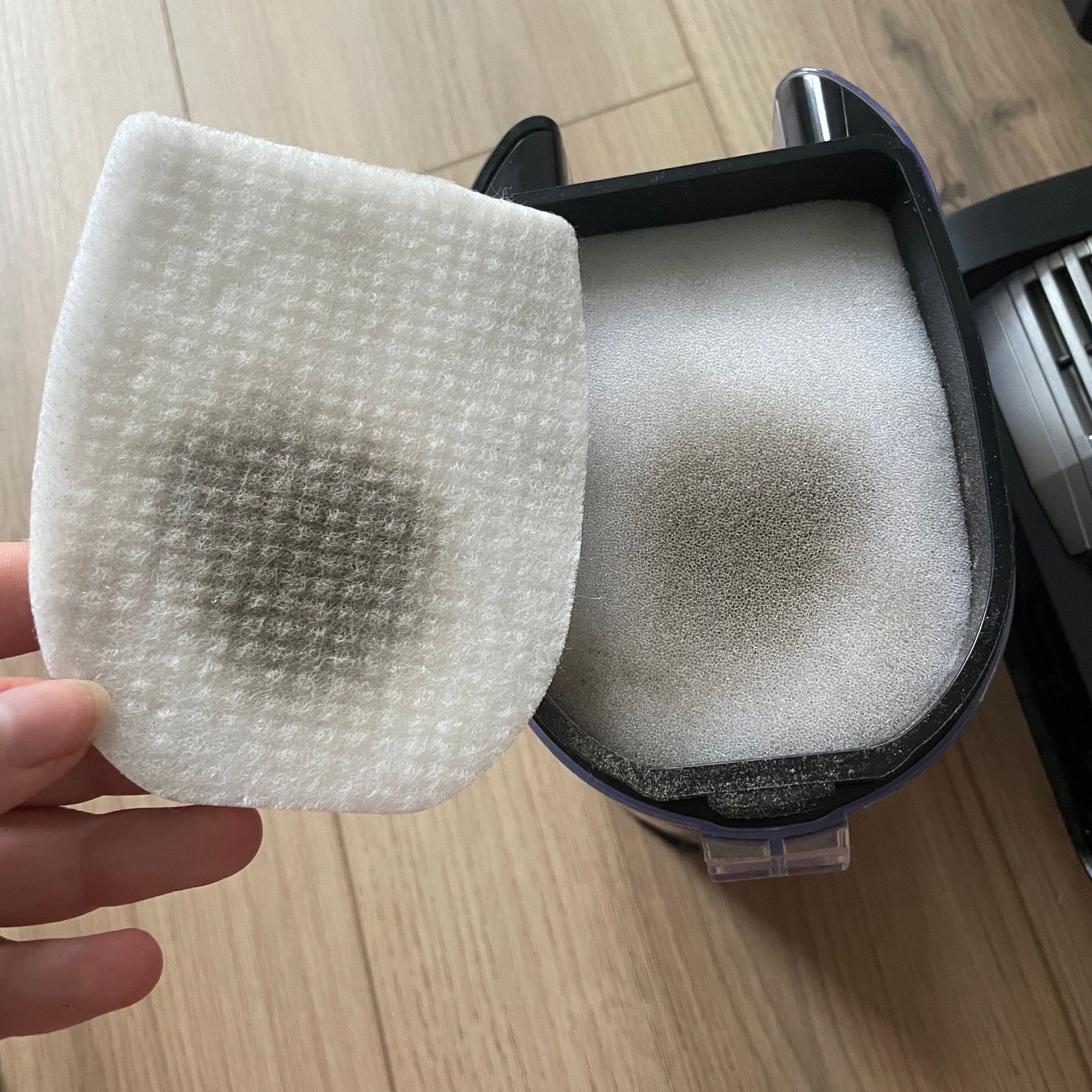 It's also recommended that you clean the Shark filter according to the instructions. I typically do this once a month, and it's easy enough to do by tapping off any loose dust and then rinsing it under the tap before allowing it to dry fully.