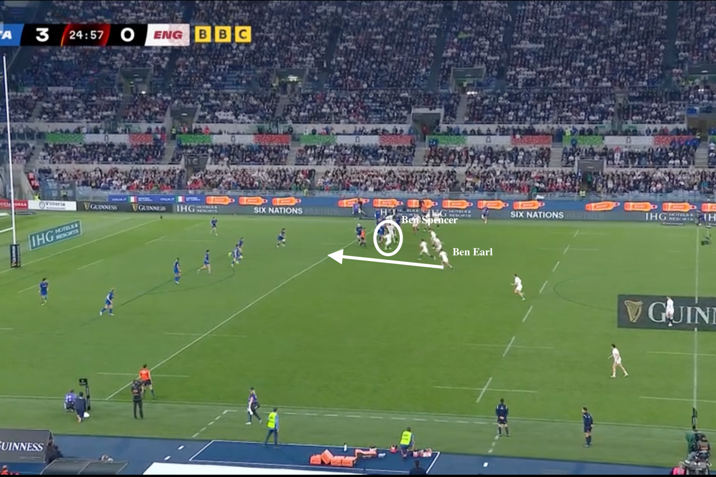 The aforementioned Freeman score came after a toss over the top to Ben Spencer beyond the 15, with Ben Earl setting a platform having been used as carrier from the 13 channel.