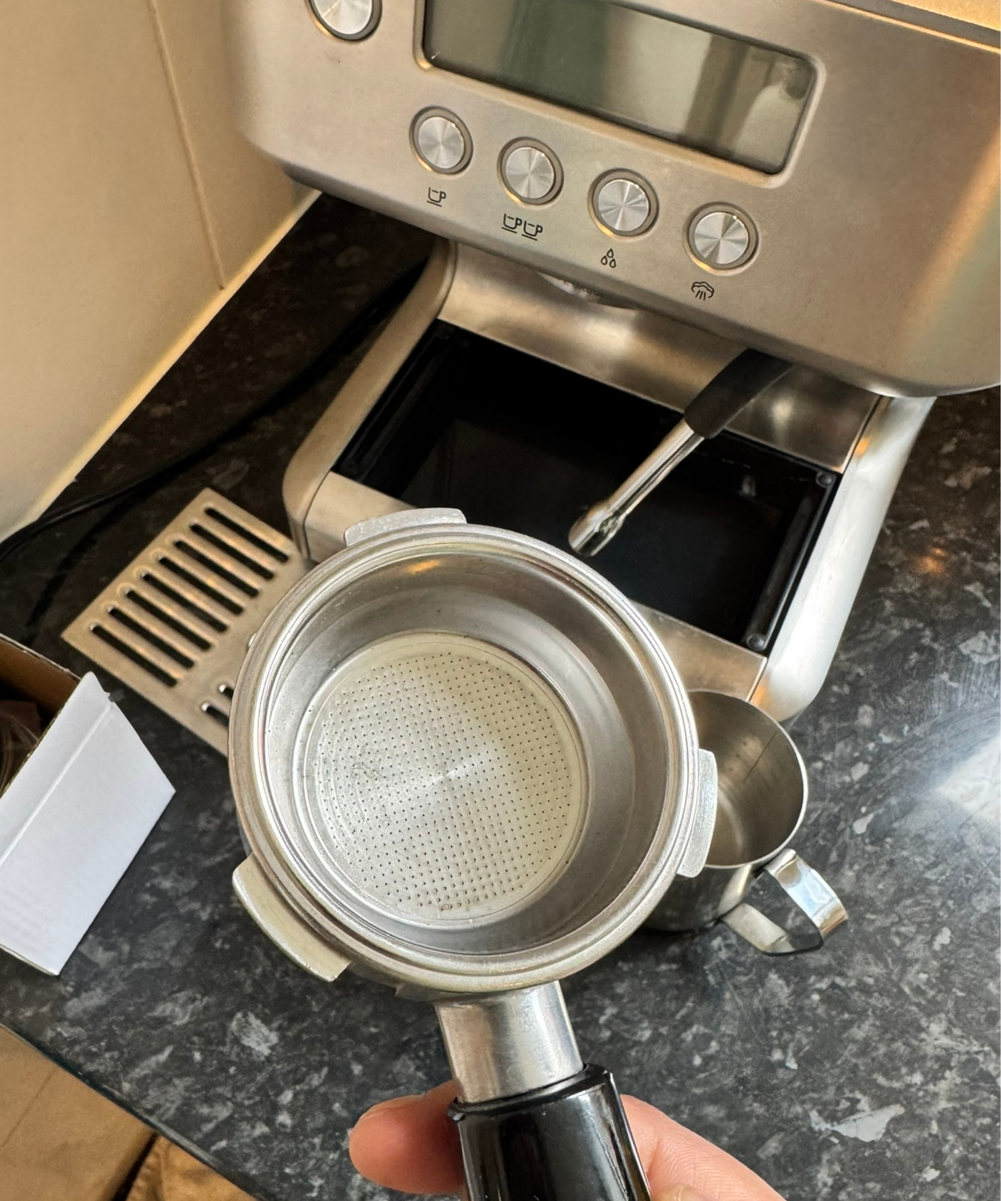 The tamper feels a little cheap compared to the more premium materials used for the rest of the machine. Its plastic is BPA-free and food-safe, but feels a touch too lightweight for tamping. When you're pressing grounds into the portafilter, you want them to be evenly distributed, and if you’re pressing yourself – as opposed to using a heavier weight – there’s more room for error. During testing, my barista partner and I found that there were occasionally loose grounds on top after pulling the tamper away.