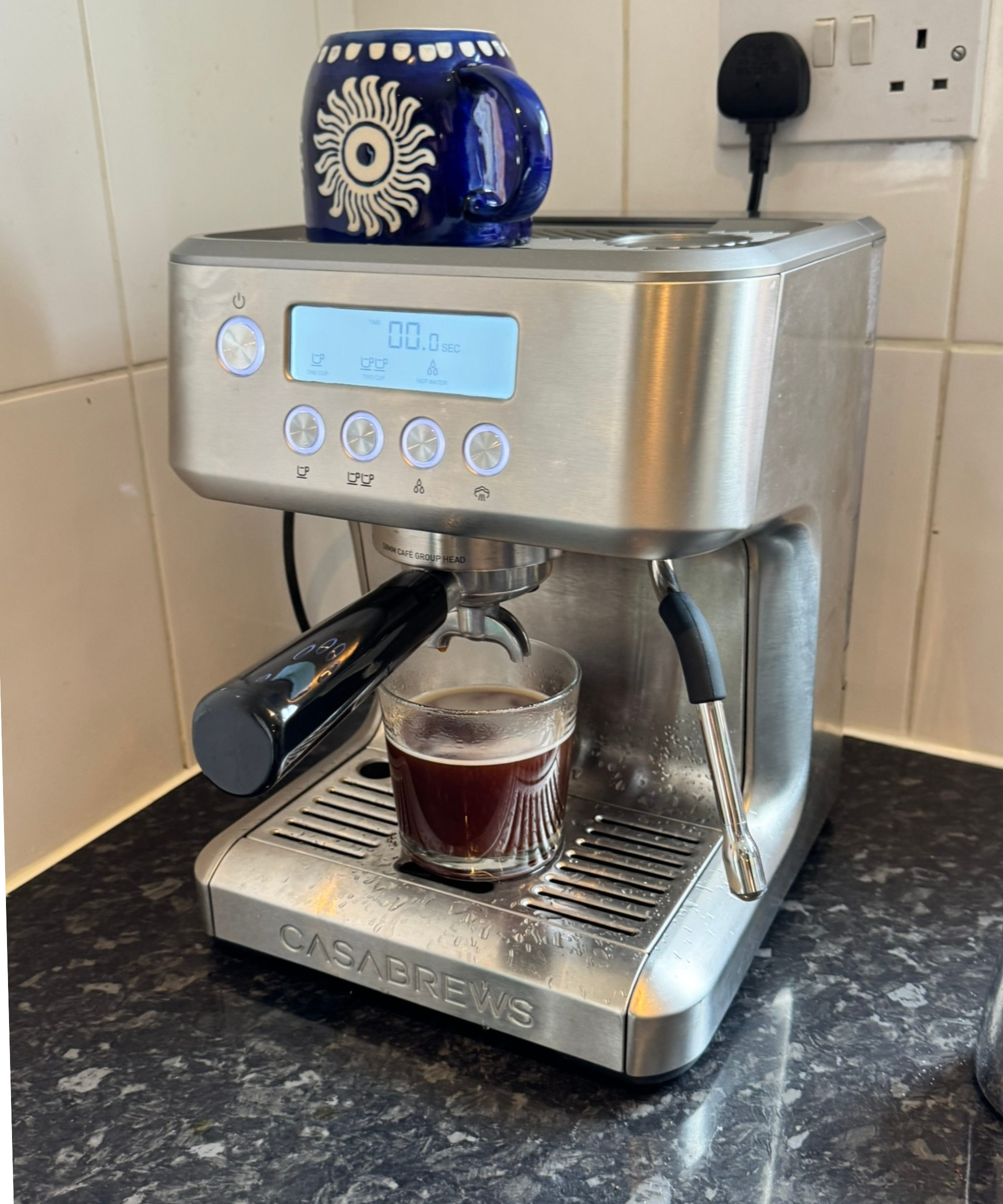 The Casabrews ULTRA Espresso Machine brews truly delicious coffee to a standard similar to that of professional machines. You can adjust pour time and temperature, although I found that the pour times we set weren't always saved accurately.
