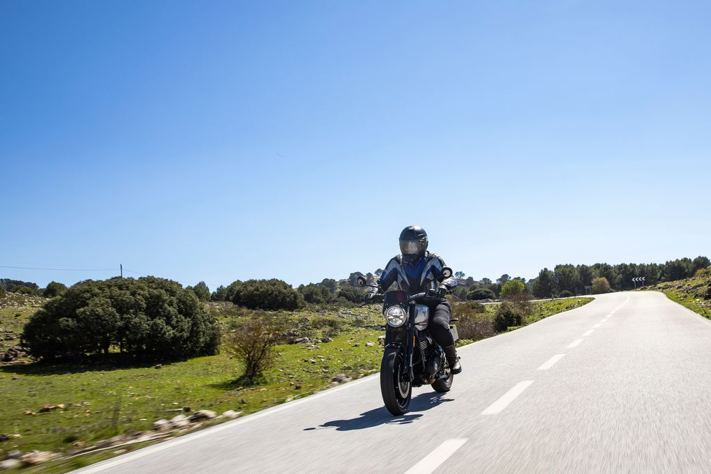 Why? That proud, upright seating position and mid-mounted foot control setup make you instantly feel like you're in control of the whole world. It's extremely confidence-inspiring, right from the drop. The mirrors and their positioning also allow for a much broader field of view than the ones on the Thruxton, and they're not nearly as fiddly to position correctly to see what you want.