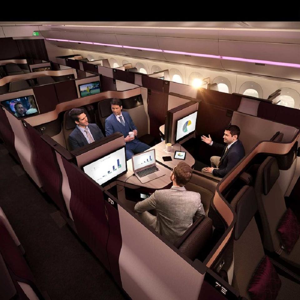 Traveling with business colleagues or family? The Q Suites can be configured for singles, couple or in this case, foursomes. Qatar Airways