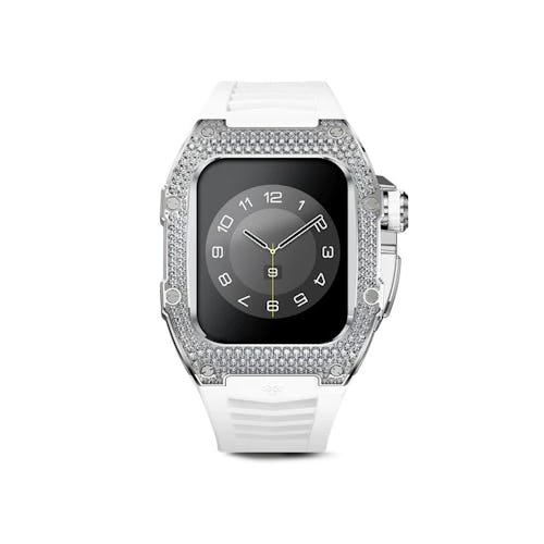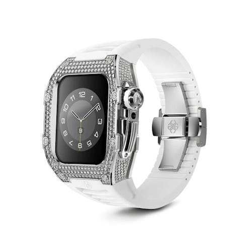 Known as the Diamond Edition, the case is milled from a solid block of titanium. The luxe silver base is then fitted with 443 diamonds, equivalent to about four carats, which are nestled around the case. Golden Concept claims that the Diamond Edition is the first Apple Watch case that uses real diamonds in its design. The VVS1-2, E-grade stones are colorless and have a high-quality clarity and cut for a look that says, I can count my steps just like you. But I’m richer.