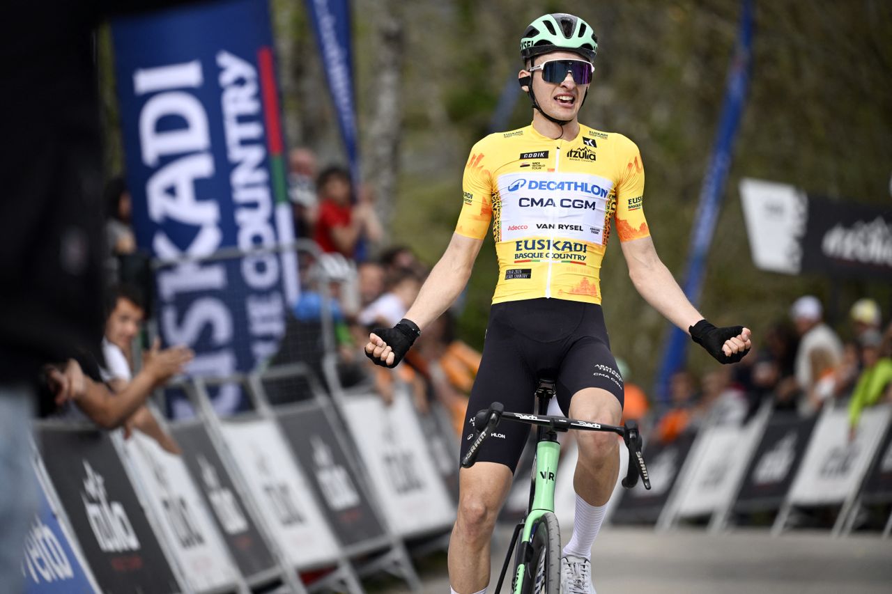 The 19-year-old Decathlon CMA CGM rider attacked the bunch on the day's main climb, the 9.4km San Miguel de Aralar, towards the end of the 164km parcours. He caught the early breakaway and quickly passed through them before executing a textbook descent and finishing on the final short climb with a 1:25 time gap over Mathias Skjelmose (Lidl-Trek), who led in the chasing group, followed by Primož Roglič (Red Bull-Bora-hansgrohe).