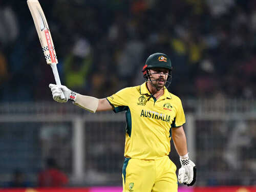 <p>Travis Head starred with bat and ball as Australia set up a World Cup final clash with India after a tense three-wicket win over South Africa in Kolkata on Thursday. Australia started the tournament with two losses but registered their eighth straight win. (Reuters Photo)<br /></p>2/9:Australia wobble in chase of 213