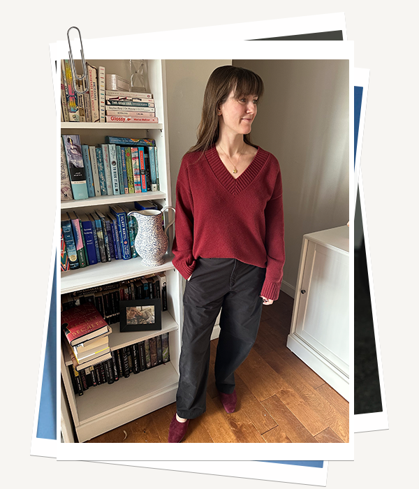 I’m also guilty of ordering this in multiple colors over the years. (With help from my trusty, under-$10 fabric shaver, my first one from four years ago still looks brand-new.) I spend most work-from-home days wearing mine with Leset lounge pants or plain-old Aerie pajama bottoms. Heading into the office, I swap in barrel-leg jeans, coordinating flats, and a sprinkling of my favorite jewelry. I think the other Ref girlies would approve.