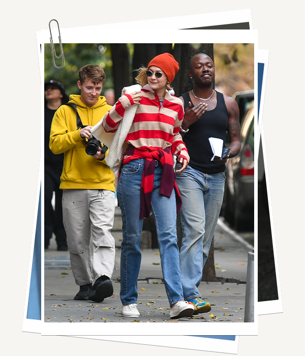My favorite take has to be Gigi Hadid’s doubling-up of a warm-toned striped rugby with a contrasting striped sweater around her waist. (Can you tell she runs her own knitwear brand?) It’s preppy without going full-on Connecticut country club; a little nostalgic and infinitely easy to wear.
