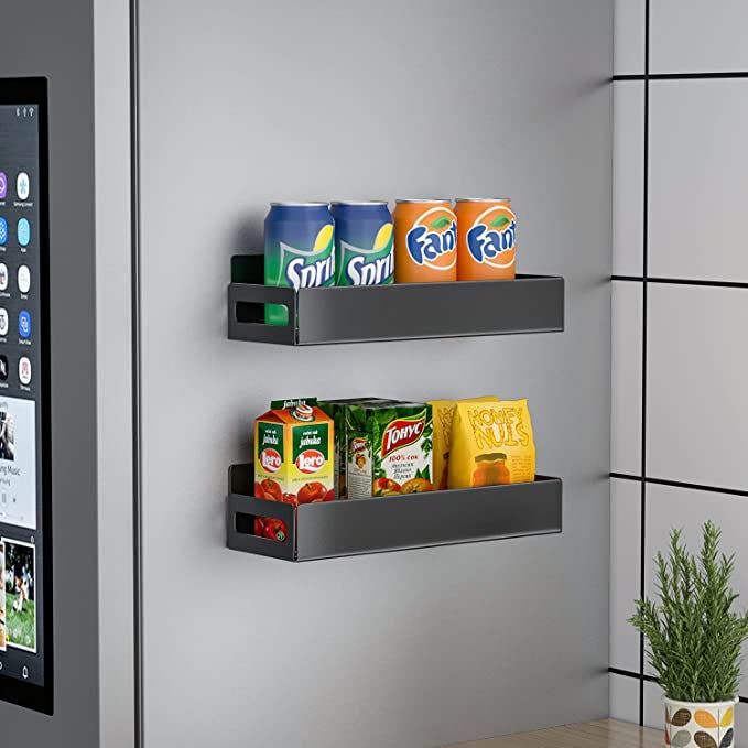 Add these floating shelves to the side of your fridge, and you’ll instantly have a convenient place to keep spices, soda cans, condiments, and more. The strong magnets in the back can hold up to 7 pounds — and there’s no need to worry about them corroding over time, as they’re both waterproof as well as rust-resistant.