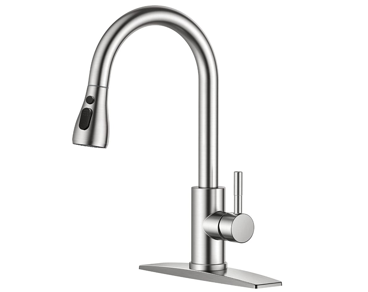 There’s nothing wrong with using the faucet that came with your home — but there’s no denying that this faucet is a definite upgrade. Its pull-down sprayer makes it easier to wash dishes from any angle, and it even features a ceramic disc on the inside to help prevent drips when not in use. Choose from nine sleek finishes.