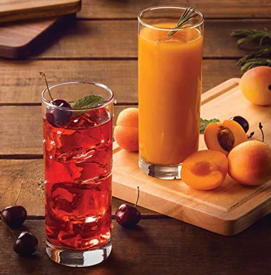 Not only will these highly-rated highball glasses make iced coffee or a little cocktail look super chic, but they’re also a good size for your go-to sparkling water. The slim shape is the perfect height for your favorite reusable straws, and it makes it easy to fit these dishwasher-safe glasses in a small kitchen cabinet.