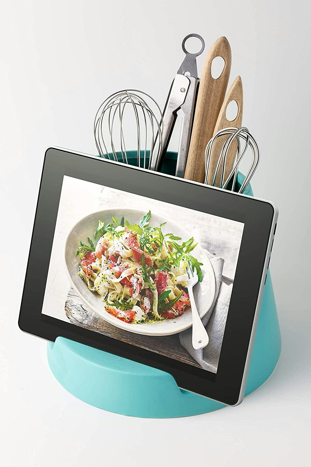 A Ceramic Utensil Holder With a Stand for Your Tablet or Cookbook