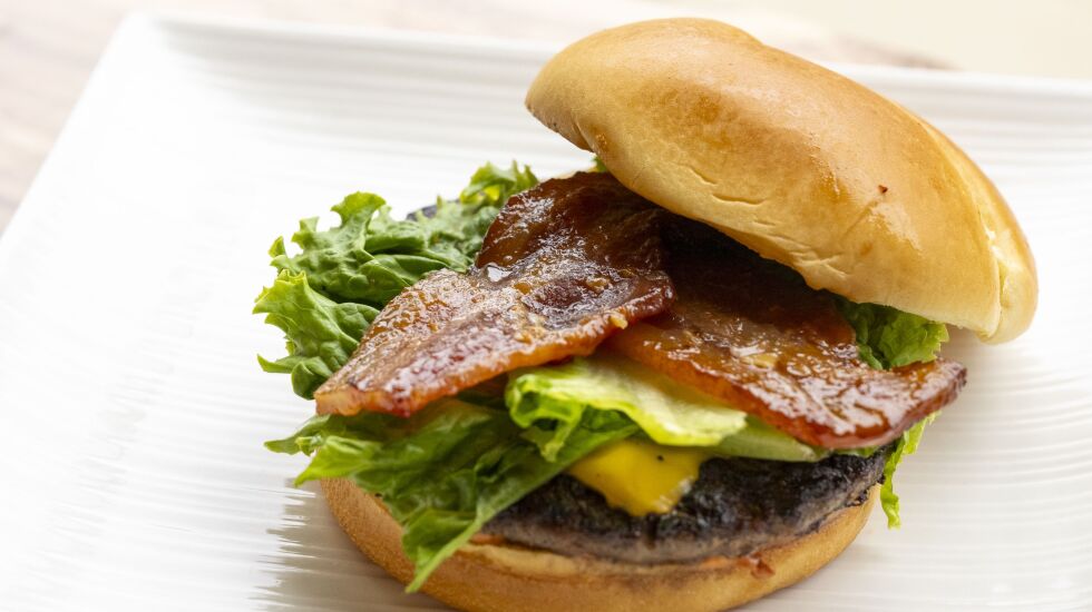 The best seller is breakfast, anchored by silogs, which are rice dishes with eggs and a choice between Spam, longganisa and tocino bacon, a Mano specialty. Tocino is typically pork cured with a mixture of sugar, salt and annatto powder, and Mano puts its own twist on the breakfast meat by putting those seasonings on bacon so it gets a sweet, caramelized coating. The tocino bacon also makes an appearance on Mano’s cheeseburger.